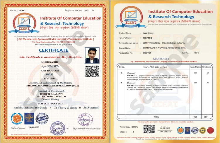 - ICERT (Institute of Computer Education & Research Technology) is registered under a public trust (Vide Registration No. 456), under NCT of New Delhi, Govt of India.